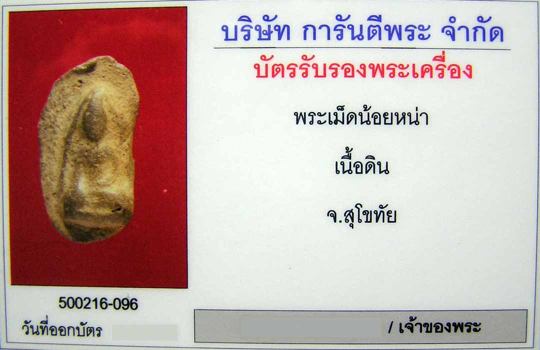 สวย ฟอร์มดี ดูง่าย...พระเม็ดน้อยหน่า สุโขทัย เนื้อดิน พร้อมใบรับรองพระแท้