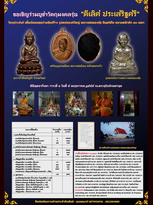 ชุดกรรมการ จำนวนสร้าง 199 ชุดๆละ @ 6,999 บาท ได้รับ 20 องค์ ดังนี้