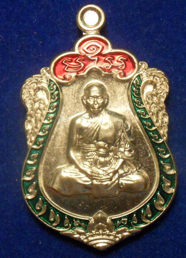 เหรียญเสมา 7 รอบ เนื้ออัลปาก้า ปั๊ม 2 หน้า ลงยา 2 สี หลวงพ่อสิน วัดละหารใหญ่ หมายเลข ๑๑๑๘ พร้อมกล่องเดิมๆ
