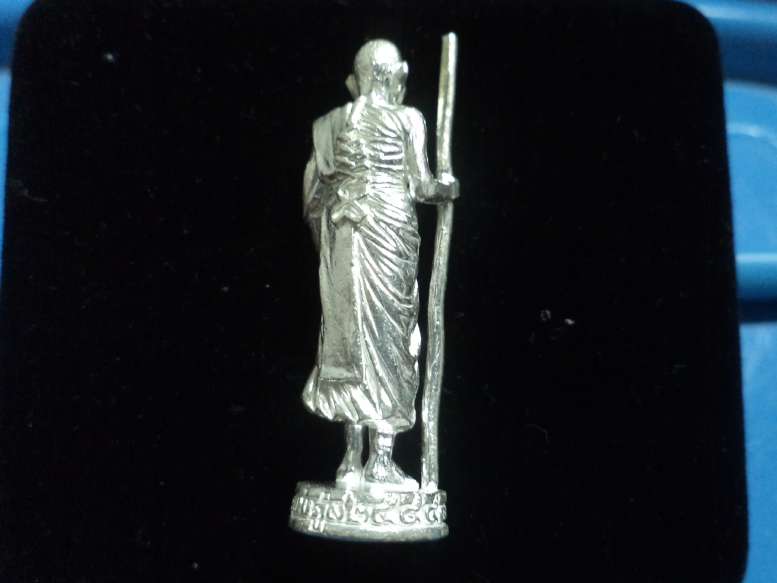 รูปหล่อยืนถือไม้เท้าครูรุ่นแรก เนื้อเงิน หลวงปู่นาม วัดน้อยชมภู่ครับ
