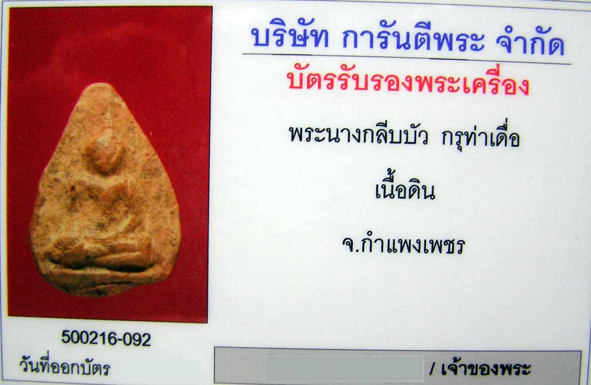 นางกำแพงพิมพ์กลีบบัว กรุท่าเดื่อ เนื้อดิน กำแพงเพชร + ใบการันตีพระแท้จากเวปg-pra.com