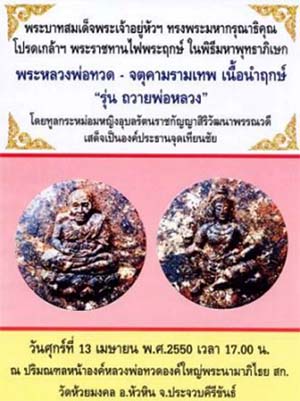 มาแล้วครับ หลวงพ่อทวด จตุคาม องค์พ่อใหญ่ เนื้อก้นครก นำฤกษ์ ถวายพ่อหลวง วัดห้วยมงคล พิธีใหญ่ไฟพระฤกษ์วันวิสาขบูชา 31 พ.ค. ฟ้าหญิงอุบลรัตน์เสด็จเป็นประธานจุดเทียนชัย เปิดจองที่วัดแห่งเดียว ราคา 499 ตอนนี้ขายใบจองกว่าพันบาท และต้องไปรับพระเองที่วัด ...คนอยู่ไกลไปไม่ถึง หอม ห้วยมงคล ศิษย์ก้นกุฎิวัด อาสาจัดหั้ย ... ในราคา องค์ละ 999 (รวมค่าดำเนินการ) พร้อมจัดส่งให้ถึงที่ครับ มีอยู่แค่ 10 องค์ สนใจใส่ชื่อที่อยู่ พร้อมโอนเงินก่อนเวลา 15.00 น. วันที่ 13 พ.ค. พระคัดสวยรับประกันความพอใจ...ช้าหมด อดนะจะบอกหั้ย..