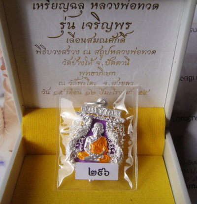 หลวงพ่อทวดรุ่นเจริญพร เลื่อนสมณศักดิ์ วัดพะโค๊ะ เนื้อเงินลงยาม่วงหมายเลข 296