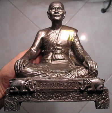 พระรูปเหมือนบูชาหลวงพ่อจรัญ วัดอัมพวัน จ.สิงห์บุรี หน้าตัก๕นิ้วนั้งบนฐานขาสิงห์รมน้ำตาลสภาพสวยเดิมๆสร้างโดย พลโท บัณฑิต เนียมธรรม(สร้างถวาย) ประมาณปี2538 ครั้งนั้นได้สร้างรูปเหมือนเท่าองค์จริงไว้ที่วัด๑องค์ ไว้ที่ดอนเมือง๑องค์ในการสร้างครั้งนี้ได้สร้างรูปเหมือนบูชาขนาด๓นิ้ว ๕นิ้ว และ๙นิ้วส่วนมากอยู่ที่ค่ายจิรประวัติ จ.นครสวรรค์และลพบุรีเป็นส่วนมากผมขอแบ่งลูกศิษย์ได้มา3-4องค์จารโค๊ดหมายเลขด้วยเครื่องทุกองค์สนใจแบ่งบูชาองค์ละ 1,500 บาท |