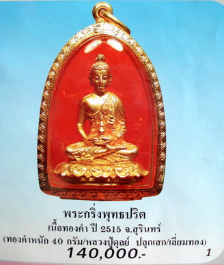 กริ่งพุทธปริตเนื้อ ทองคำ หนัก 40 กรัม(พร้อมกรอป) ปี 2515 หลวงปู่ดูลย์ จ.สุรินทร์ จัดสร้างโดยโรงพยาบาลจังหวัดสุรินทร์ ออกจากวัดตอนนั้นประมาณ 30000 บาท แต่องค์นี้ปล่อย