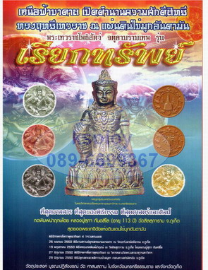เปิดรับจอง จตุคาม รุ่นเรียกทรัพย์ ลป.สุภา กันตสีโล (113 ปี) วัดเขารัง ภูเก็ต...ราคาตามใบจอง...ตั้งแต่ วันนี้ ถึง 15 มิถุนายน 2550 รับองค์พ่อ ต้นเดือนกันยายน นี้ครับ....สามารถรับองค์พ่อเองได้ที่ รังสิตคลองสาม หรือจัดส่งทางไปรษณีย์ เพิ่มค่าจัดส่ง 100 บาทครับ....ติดต่อที่ ksploy 089-6699367 |