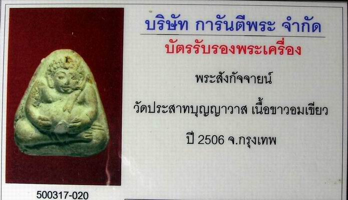 สังกัจจาย เนื้อขาวอมเขียวก้านมะลิ วัดประสาท ปี2506 มีประวัติการสร้างโดยละเอียด + ใบรับรองพระแท้จากการันตีพระ