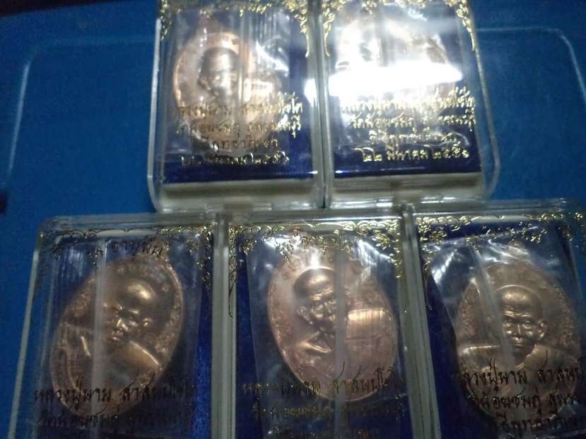 1 ชุด 5 เหรียญครับท่าน เหรียญ"อายุยืน เนื้อทองแดง หลวงปู่นาม วัดน้อยชมภู่" ราคาชุดละ 2500 บาท มี 1 ชุด