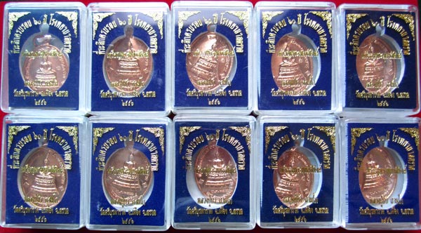 เหรียญพระพุทธสิหิงส์ ที่ระลึกครบรอบ ๖๐ ปี โรงพยาบาลตราด เนื้อทองแดง ราคาบางๆ มี 2 ชุด ชุดละ 9 เหรียญครับ