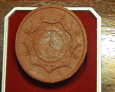ลูกนำฤกษ์สีแดง(อมน้ำตาลแดง) ด้านหลังโรยผงตะไบชนวนพระบูชาพิเศษ ตอกโค๊ด