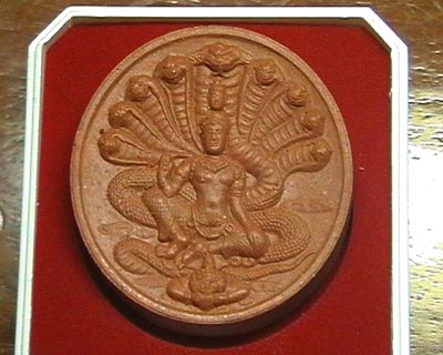 ลูกนำฤกษ์สีแดง(อมน้ำตาลแดง) ด้านหลังโรยผงตะไบชนวนพระบูชาพิเศษ ตอกโค๊ด