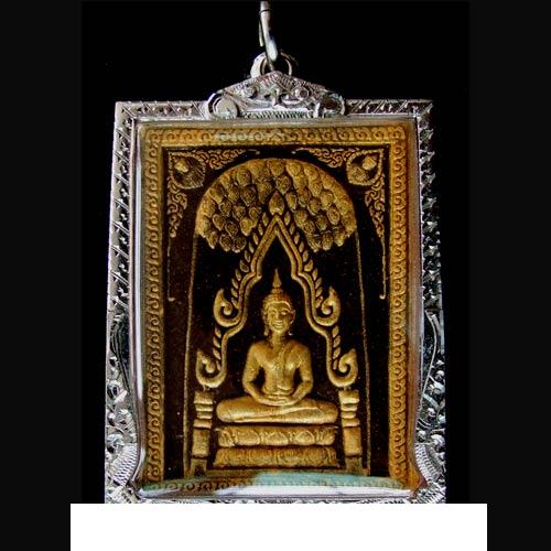 พระปรกโพธิ์ท่าเรือ เนื้อไม้ตะเคียนอินทภาณีเสาหลักเมืองนคร ปัดทอง พร้อมตลับเงินชุบทองคำขาว