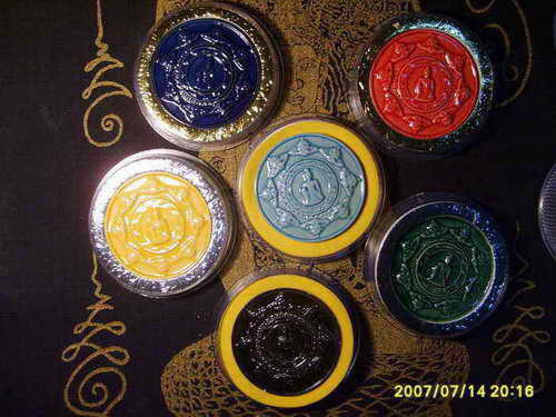 ขุมทรัพย์มหาเศรษฐี ชุดลูกเคลือบ 6 สี ดำ,เขียว,แดง,น้ำเงิน,เหลือง,ฟ้า สำหรับเคลือบฟ้า ไม่เปิดจอง เป็นลูกแถมพิเศษ สร้างน้อยกว่าสีอื่น เปิดขายราคา 4,500 / ชุด นัดรับของได้ มีแค่ชุดเดียว จัดสร้าง โดยวัดพระธาตุ พระราชธรรมสุธี อุปถัมภ์การจัดสร้าง คุณฉันท์ทิพย์ พันธรักษ์ราชเดช เป็นที่ปรึกษา และพิธีกรรม (อ้างอิงจาก ใบโบรชัว์ นะครับ) หมายเหตุ พระออกมาจริงๆ อยู่ระหว่าง 4.7 - 5.0 ซม. ไม่เต็ม 5 ซม. เพียงแต่องค์พระ ใหญ่กว่าขนาด 4.5 ซม.