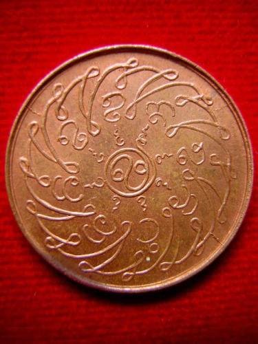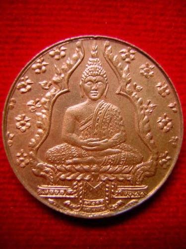 ...ลักษณะเหรียญเป็นแบบปั้มกลมแบนขอบเลียบ ด้านหน้าเหรียญ ภายในซุ้มเรือนแก้วเป็นรูป พระแก้วมรกต ประทับนั่งบนฐานบัวคว่ำบัวหงาย มีผ้าทิพย์ห้อย และดอกไม้อยู่โดยรอบ ด้านหลังเหรียญ เป็นรูปยันต์กงจักร มีอักษรจารึก มรรค ๘ อักขระขอมที่ปรากฏ คือ