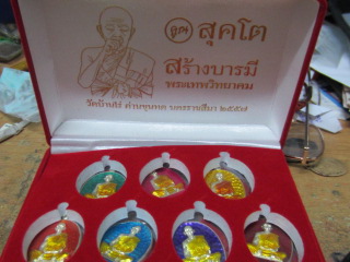 มีเหรียญหลวงพ่อคูณ สุคโต สร้างบารมี ออกวัดมาแบ่งขายชุดเต็มองคิื 7 เหรียญกระไหล่เงินลงยา เจ็ดสีหมายเลข 1846 ชุดละ 3000 บาท
