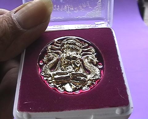 4.เหรียญชุบทองพ่นทรายลงยาแดง ขนาด 3.2 ซม. เหรียญละ 1,000 บาท มี 1 เหรียญ