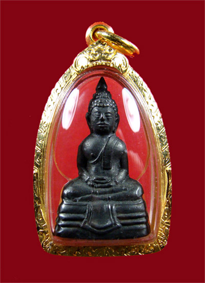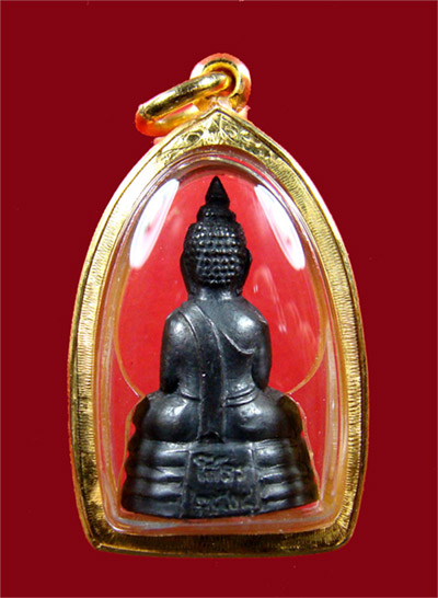 พระกริ่งหลวงพ่อโสธร ปี 2508 หน้าใหญ่ เลี่ยมทอง + บัตร พระมีตำหนิอยู่บ้างตามรูป แต่โดยรวมสวยและรมดำเดิมๆ ราคา 18,000 บาท