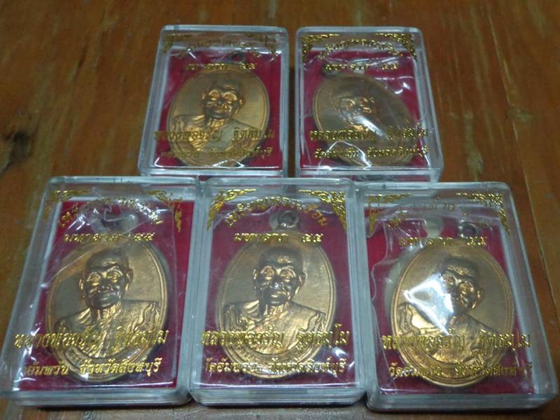 - เหรียญห่วงเชื่อม หลวงพ่อจรัญ วัดอัมพวัน รุ่นมหาลาภ 55 เนื้อทองเทวฤทธิ์ พร้อมกล่อง