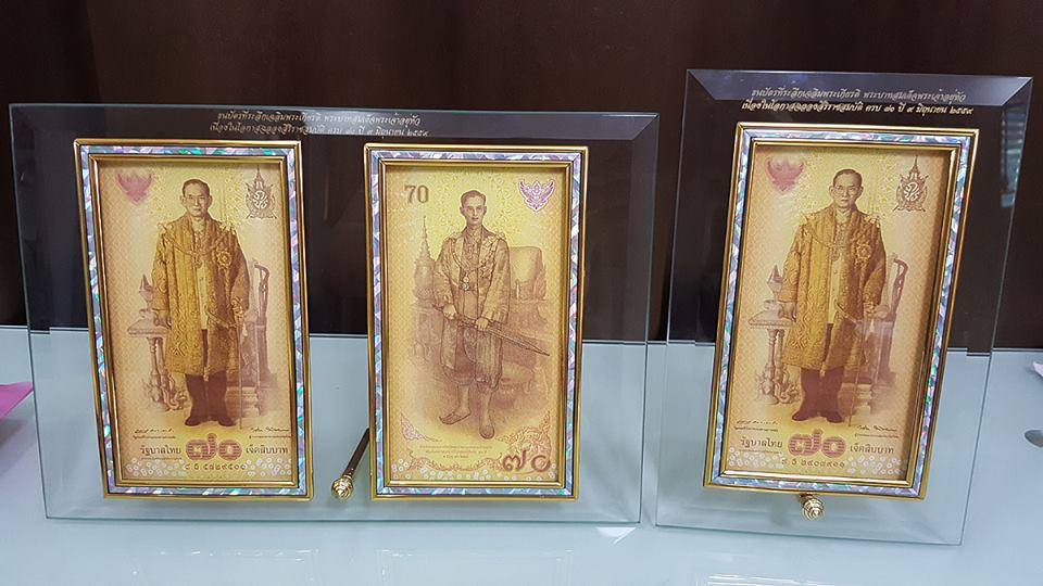 กรอบกระจกใส่ธนบัตรฉลองสิริราชสมบัติทรงครองราช ครบ 70 ปี สกรีนอย่างดี สวยงาม