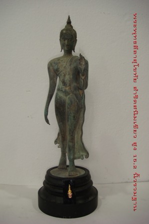 พระพุทธลีลาสุโขทัย สำริดสนิมเขียว ปี 48 ตรา สธ.(สิรินธร)