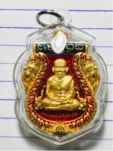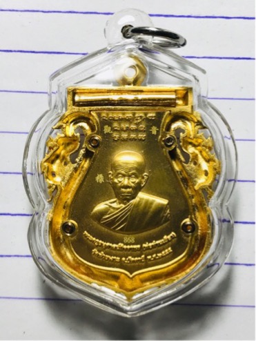 เหรียญเสมาฉลุยกองค์ หลวงพ่อทวด พิมพ์หน้าเลื่อน หลังพ่อท่านเขียว ฝังตะกรุดทองคำยันต์รับทรัพย์ รุ่นกิตติคุโณมหามงคล เนื้อบรอนซ์ชุบทองลงยาซุ้มพญานาคสีแดง หมายเลข 868 สภาพสวยพร้อมเลี่ยม (ไม่มีกล่อง)