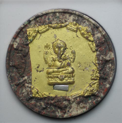 เนื้อก้นครก (ฝังตะกุดเงินชุบน้ำที่สรงองค์พระแก้วมรกต ปิดทองรองพิมพ์) ขนาด 5 ซ.ม.