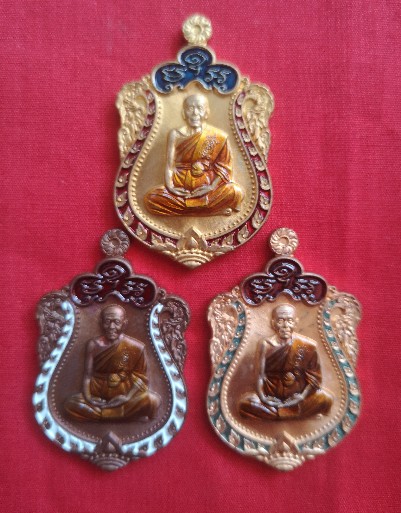 เหรียญเสมาหลวงพ่อแถม วัดช้างแทงกระจาด เพชรบุรี รุ่นเพชรเศรษฐี ชุด กรรมการลงยาหลังยันต์นูน 3 เหรียญ ประกอบด้วย