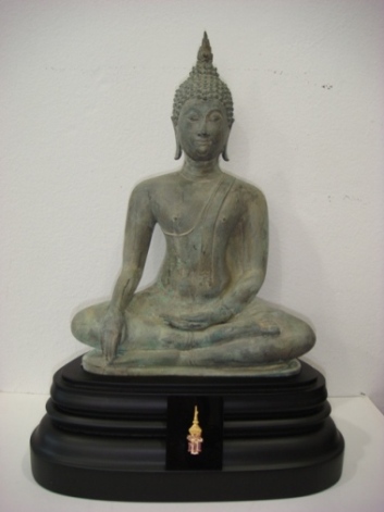 หัวข้อกระทู้ : พระบูชาสุโขทัย เนื้อสำริดสนิมเขียว หน้าตัก 9 นิ้ว ตรา สธ.(สิรินธร) ฐานถอดได้