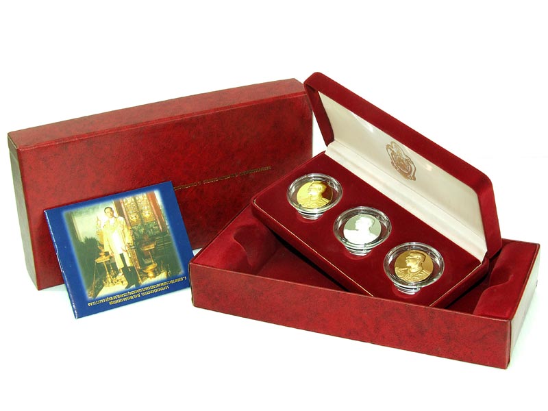 ชุดเหรียญพระบรมฉายาลักษณ์พระบาทสมเด็จพระเจ้าอยู่หัว พ่นทราย พื้นหลังขัดเงา