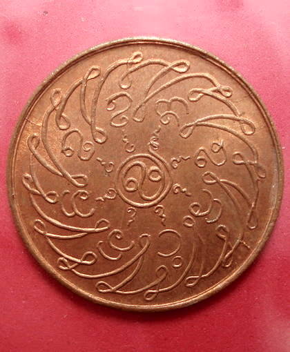 ...ลักษณะเหรียญเป็นแบบปั้มกลมแบนขอบเลียบ ด้านหน้าเหรียญ ภายในซุ้มเรือนแก้วเป็นรูป พระแก้วมรกต ประทับนั่งบนฐานบัวคว่ำบัวหงาย มีผ้าทิพย์ห้อย และดอกไม้อยู่โดยรอบ ด้านหลังเหรียญ เป็นรูปยันต์กงจักร มีอักษรจารึก มรรค ๘ อักขระขอมที่ปรากฏ คือ