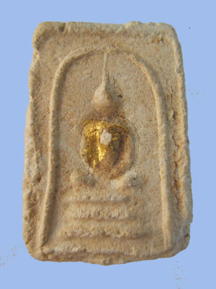 เป็นเนื้อผงสีขาวหลังยันต์จม ด้านหน้าปิดทองเก่า รับประกันความแท้