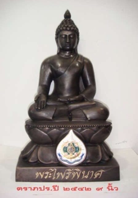 | หัวข้อกระทู้ : พระบูชาไพรีพินาศ ตรา ภปร. หน้าตัก 9 นิ้วเนื้อทองเหลืองรมดำ ปี 2542 |