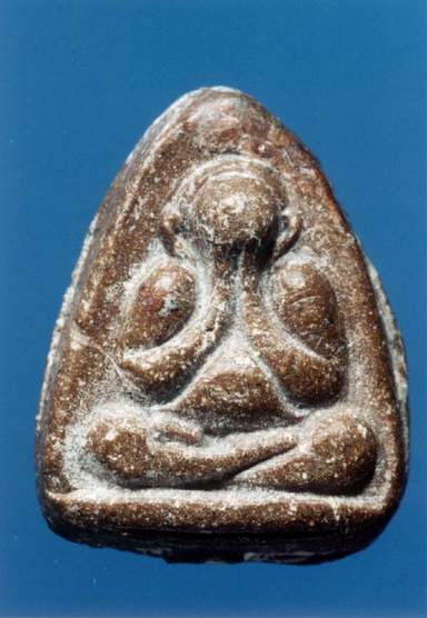 เคยสร้างพระปิดตาเลย ด้านหน้าเป็นพระปิดตาลักษณะพิมพ์ป้อมอ้วน ทรงพิมพ์แบบปลายบน ด้านหลังเป็น