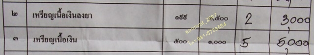 2.เหรียญเนื้อเงิน เหรียญละ 2,000.00 บาท
