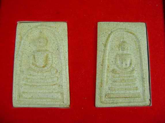 ที่พิเศษและสำคัญมากๆๆ คือ พระองค์ 2 นี้เป็น "พิมพ์ใหญ่ทรงพระประธาน" (นิยมมาก) และ "พิมพ์หูบายศรี" (นิยมรอง) ที่เนื้อพระเป็นเนื้อ "แตกลายงา" ทั้ง 2 องค์ ซึ่งมักพบเห็นได้ยาก และมีน้อย จึงสวยงามด้วยพุทธศิลป์ และล้ำเลิศด้วยพุทธคุณเป็นอย่างยิ่ง ผู้ที่มีไว้ครอบครองบูชาต่างมักจะหวงแหนมิให้หลุดมือไป กระผมก็ใช้งานรุ่นนี้อยู่ (ขึ้นคอ) ครับ ใช้แล้วมั่นใจมากๆๆๆ ครับ คุ้มครองป้องกันภัยได้อย่างแน่นอนครับ สภาพสวยๆเดิมๆ พิมพ์เนื้อ "แตกลายงา" นี้ถือเป็นพิมพ์สวยพิเศษ (คัดพิเศษมาอย่างดี) ครับ บรรจุในกล่องกำมะหยี่อย่างดีครับ ตัวองค์พระมีรอยผงเก่าติดอยู่ตามร่องแตกลายงา งดงามจริงๆ ซึ่งองค์จริงจะสวยกว่าในรูปมากครับ รอ "ผู้มีบุญบารมีและมีวาสนาใหญ่" ได้นำไปบูชา (ซึ่งผู้มีเงินแต่ไร้บุญวาสนา ก็มิอาจได้ครอบครองของดีๆๆ อย่างนี้ได้น่ะครับ)