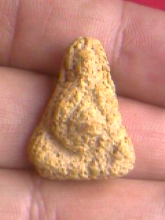 ปิดตา พิมพ์พุ่งป่อง (องค์ที่ 2) องค์นี้เนื้อเหลืองออกทอง ผิวพรุนไปทั้งองค์ คล้ายรังปลวก สวยงามมากๆ มีคราบกรุเก่าสีขาวปนเทา