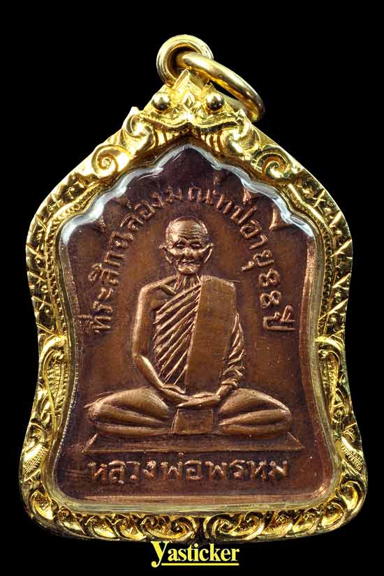 เป็นรูปหลวงพ่อพรหม นั่งสมาธิเต็มองค์ ใต้หลวงพ่อมีอักษรเขียนว่า " หลวงพ่อพรหม " ด้านบนเขียนว่า " ที่ระลึกฉลองมณฑปอายุ 88 ปี " |