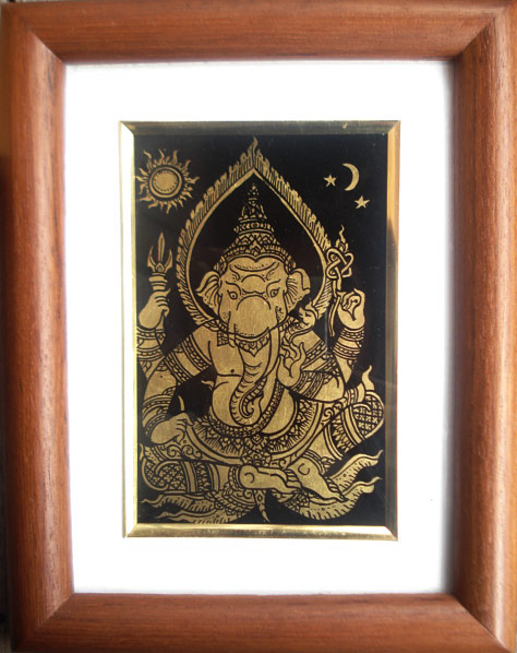 จากนั้นปิดทองทับ แล้วใช้น้ำล้างชิ้นงาน ทองที่ปิดลงบนรักเช็ดจะยังคงติดอยู่บนชิ้นงาน แต่ทองที่ปิดลงไปบนหรดาลจะหลุดออกมาทำให้มองเห็นเป็นลวดลาย