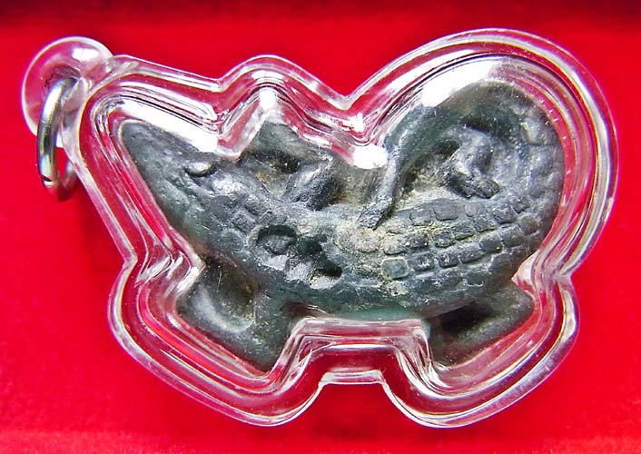 จระเข้โทน หลวงพ่อสนิท วัดลำบัวลอย รุ่นแรก(ขาติด หางตัน) ปี 2509 เนื้อตะกั่วหล่อ ใต้ท้องตอกยันต์ "อิสวาสุ นะมะพะทะ" โดยหลวงพ่อหล่อเองที่วัดมิได้สร้างมาจากที่อื่น เจตนาเพื่อบูชาคุณอาจารย์เส็ง ที่ได้ประสิทธิ์ประสาทวิชาจระเข้โทนมาให้ และเพื่อแจกทหาร ตำรวจ คาถาบูชาชนิดย่อๆ " อิ สวา สุ " ภาวนา 3 คาบ 7 คาบ หรือ แบบฉบับเต็มก็ว่า "พุทธังสะระณังเมสิทธิ ธัมมังสะระณังเมสิทธิ สังฆังสะระณังเมสิทธิ พุทธังเอหิมาเรโส พุทธังกุมภีโรโจรัง คงคังปิติอิ ธัมมังกุมภีโรโจรัง คงคังปิติอิ สังฆังกุมภีโรโจรัง คงคังปิติอิ" ดีนักปกป้องคุ้มครอง แคล้วคลาด ภูตผีปีศาจเกรงกลัว ป้องกันสัตว์เลื้อยคลาน ถอดถอนเสน่ห์ยาแฝดต่างๆ จระเข้โทน จะใส่กระเป้าเสื้อกางเกง ผูกติดเอว คล้องคอ รอดราวผ้า ใต้ถุนไม่ถืออะไรทั้งสิ้น เว้นแต่จะเป็นผู้คิดคดต่อชาติ ศาสนา พระมหากษัตริย์ จระเข้ไม่คุ้มครอง จะแพ้ภัยตัวเอง ประวัติการสร้างจระเข้โทน "การสร้างเครื่องรางประเภทจระเข้โทนนั้นเกิดขึ้นจากความเชื่อแต่โบราณที่ว่า เมื่อครั้งก่อนพุทธกาลสมัยที่พระพุทธเจ้ายังเป็นพระโพธิสัตวย์เสวยพระชาติ 500 ชาตินั้น มีอยู่ชาติหนึ่งพระองค์เสวยชาติเป็นพญากุมภีร์ เป็นเจ้าแห่งสัตว์น้ำทั้งหลาย มีบริวารเป็นจระเข้อีก 500 ตัว เรียกได้ว่าใคร ๆ ต่างก็เกรงกลัวบารมีของพญากุมภีร์เป็นอันมาก จากความเชื่อนี้ทำให้ครูบาอาจารย์ผู้ทรงวิทยาคุณทั้งหลายจึงนิยมสร้างจระเข้โทนเป็นเครื่องรางให้ลูกศิษย์ลูกหาได้นำไปบูชาติดตัวกัน เพื่อปกป้องคุ้มครองตนและปกป้องเรื่องอุบัติเหตุต่าง ๆ ให้บังเกิดเป็นแคล้วคลาด ในจำนวนครูบาอาจารย์ที่สร้างจระเข้โทนได้มีชื่อเสียงและมีประสบการณ์สูงนั้น ต้องยกให้พระครูเวทย์วินิฐหรือ หลวงพ่อสนิท วัดลำบัวลอย จ.นครนายก เป็นหนึ่งในนั้น โดยการสร้างจระเข้โทนนั้นท่านศึกษาเล่าเรียนมาจากหลวงลุงเส็ง ซึ่งมีศักดิ์เป็นลุงแท้ ๆ ของท่าน ตัวหลวงลุงเส็งนี้ได้ศึกษาวิชามาจากที่ใดไม่ได้กล่าวถึง (เข้าใจว่ามาจากทางเขมร) แต่ท่านพยายามคะยั้นคะยอให้หลวงพ่อสนิทตั้งใจเรียนวิชานี้จากท่าน เพราะท่านทราบว่าต่อไปหลวงพ่อสนิท จะต้องเป็นผู้รับมรดกชิ้นนี้จากท่านไป ซึ่งหลังจากหลวงลุงเส็งถ่ายทอดวิชานี้ให้หลวงพ่อสนิทได้ไม่นาน ท่านก็ลาสิกขาไปครองเรือน และถึงแก่กรรมในกาลต่อมาเรื่องความศักดิ์สิทธิ์ของจระเข้โทนของหลวงลุงเส็งนั้น ครั้งหนึ่งหลวงพ่อสนิทท่านเคยเล่าให้ฟังว่า สมัยแรก ๆ ท่านไม่เคยเชื่อเรื่องนี้แบบมาก่อน หลวงลุงเส็งจึงพาท่านไปที่ริมแม่น้ำแห่งหนึ่ง และหยิบจระเข้ออกจากย