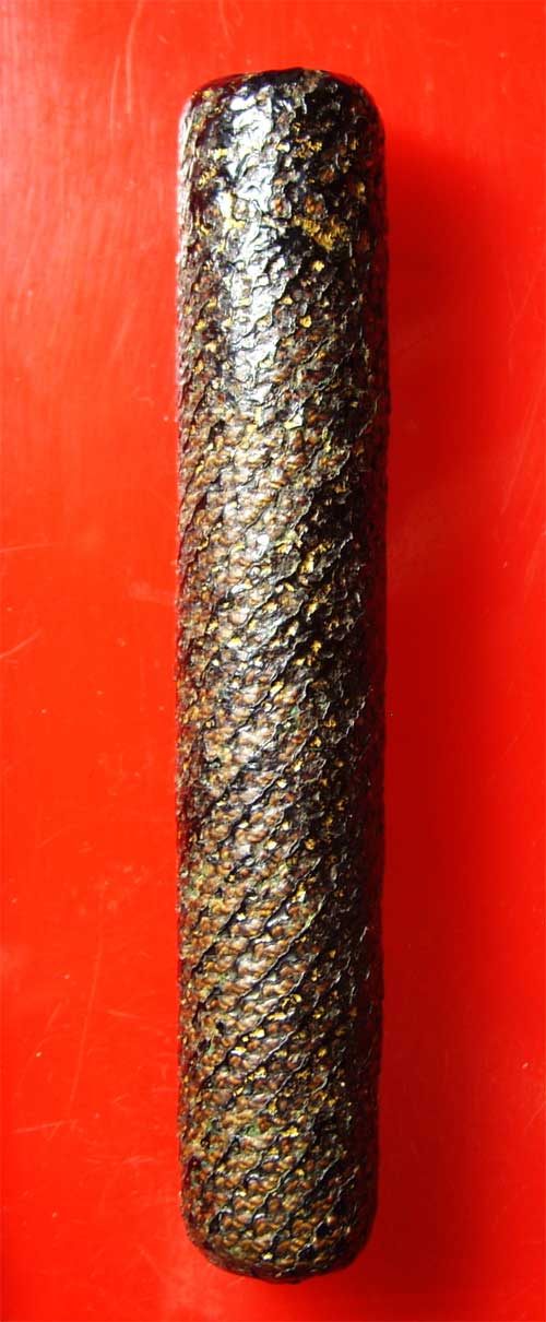 ตะกรุดหนังเสือหลวงพ่อนอ รุ่นทูลเกล้า สุดยอดตะกรุด เครื่องรางตะกรุด ยอดนิยมอันดับต้นๆ ดอกนี้ฟอร์มมาตรฐาน มองเห็นแกนกลางเป็นทองแดงม้วนหนังหน้าผากเสือ ถักลายละเอียดหุ้มหัวท้าย (หรือเรียกว่าลายกระสอบ) รักมันส์ มีปิดทองเดิมๆมาจากวัด สมัยก่อนออกจากวัด ปี249.กว่า ราคา500บาทซึ่งถือว่าแพงมาก แต่ถ้าใครไม่แน่ใจท่านจะให้ไปลองยิงก่อน |