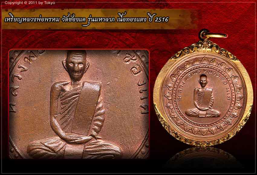 วันนี้ของโชว์ เหรียญมหาลาภ หลวงพ่อพรหม วัดช่องแค ปี 2516 เนื้อทองแดง