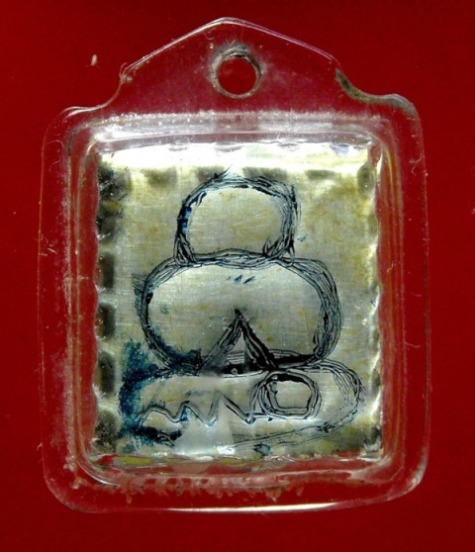 จะเรียกตะกรุดหรือแผ่นยันต์ก็ได้ครับ เขาเล่ากันว่าหลวงพ่อองค์นี้ท่านทำตะกรุดให้ลูกหลานชาวบ้านแล้วแต่ใครจะมีอะไรไปให้ท่านทำ ถ้าท่านมีตะปูก็ใช้ตะปูมีปากกาลูกลื่นอยู่ใกล้ๆก็ใช้อันนั้นจาร วัสดุใครมีทองแดงหรือฝากระป๋องไมโลที่เป็นอลูมิเนียมมาให้ท่านก็ทำให้ ชิ้นนี้ได้มาจากคนนครสวรรค์ครับด้านในมีแผ่นที่หลวงพ่อจารอีกชุดครับ |
