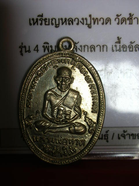 วัตถุมงคลหลวงปู่ทวด รุ่นปีพ.ศ. 2505 นี้มีการสร้างมากมายหลายแบบ ทั้งหลังเตารีด หลังหนังสือ ฯลฯ แต่เหรียญรุ่น 4 ที่เข้าพิธีพร้อมพิธีหลวงปู่ทวดรุ่นหลังเตารีดปีพ.ศ.2505 ได้แก่เหรียญรูปไข่เนื้ออัลปากาและเหรียญทองแดงที่ไม่ใช่พิมพ์เขยื้อน (ข้อมูลจากหนังสือหลวงปู่ทวดเล่มสีน้ำเงิน) ราคายังพอเก็บได้นะครับ |