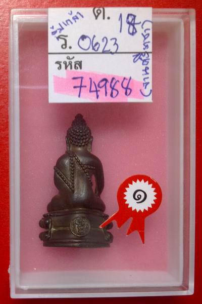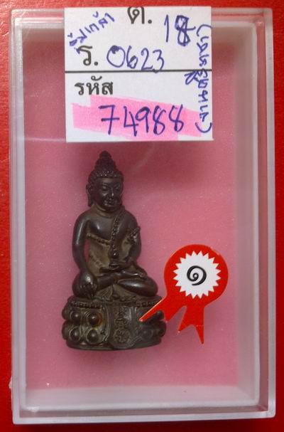 พระกริ่งคุ้มเกล้า เนื้อนวโลหะ ปี2522 (รพ.ภูมิพล) จึงส่งเข้าร่วมประกวดแข่งขันทันที งานนี้หินเหมือนกันครับ คนส่งพระเยอะมากแน่นทุกโต๊ะทีเดียว ผลก็คือได้โบว์แดงรางวัลที่ 1ติดมือกลับบ้าน