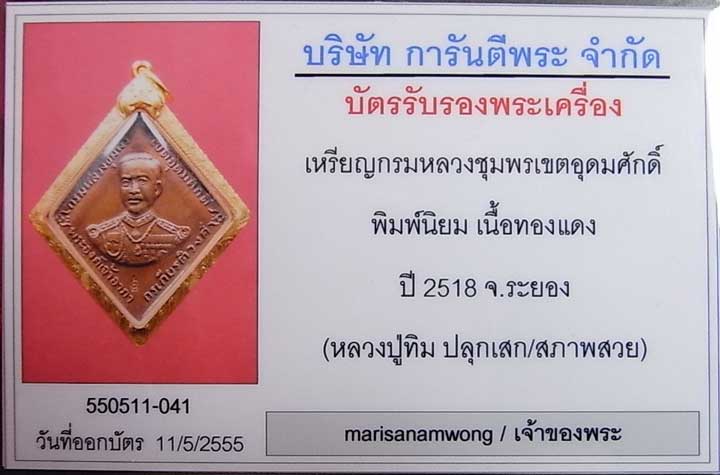 กับเนื้อกะไหล่ทองกรรมการ โดยพิมพ์นิยม(หลัง