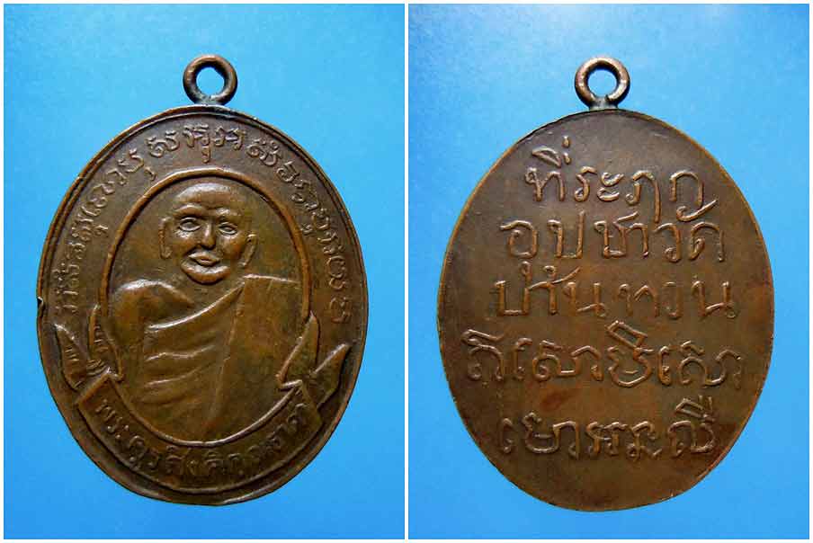 หลวงพ่อม่วง วัดบ้านทวนรุ่นแรก หลวงพ่อม่วง วัดบ้านทวน กาญจนบุรี ท่านได้รับพระราชทานสมณศักดิ์พระครูชั้นสัญญาบัตรที่ พระครูสิงคิคุณธาดา เมื่อปี๒๔๔๘ และได้สร้างเหรียญรุ่นแรกขึ้นมาเพื่อให้ศิษยานุศิษย์และผู้ที่เคารพศรัทธาเป็นที่ระลึก เหรียญรุ่นแรกของท่าน ปัจจุบันหาได้ยากยิ่ง เพราะเป็นเหรียญที่เก่าที่สุดในการสร้างพระเหรียญในกาญจนบุรี ใครที่ได้ครอบครองจะหวงแหนกันมาก เพราะทุกคนที่มีประสบการณ์ต่างบอกตรงกันว่า คงกระพันชาตรี แคล้วคลาดปลอดภัย และ เมตตามหานิยม สำหรับองค์นี้ตำหนิชัดเจนทุกจุดครับ |