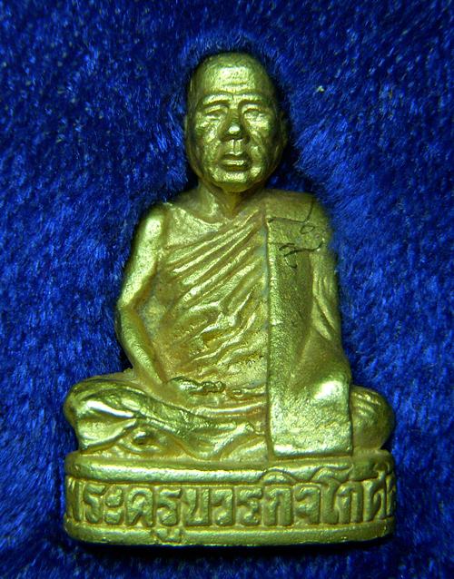 รูปหล่อเนื้อทองคำหลวงพ่อตัด วัดชายนา สร้างปี 2540 พร้อมกับเนื้อเงิน กะไหล่ทอง ทองเหลืองรมดำ องค์นี้เป็น 1 ใน 13 องค์ ครับ..ผงพุทธคุณต่างๆท่านได้เมตตานำมาพร้อมกับบรรจุให้ โดยต้องมีกรรมวิธีและขั้นตอนต่างๆอีก ถือว่าเป็นรูปหล่อรุ่นแรกที่เข้มขลังสุดๆเลยครับ |