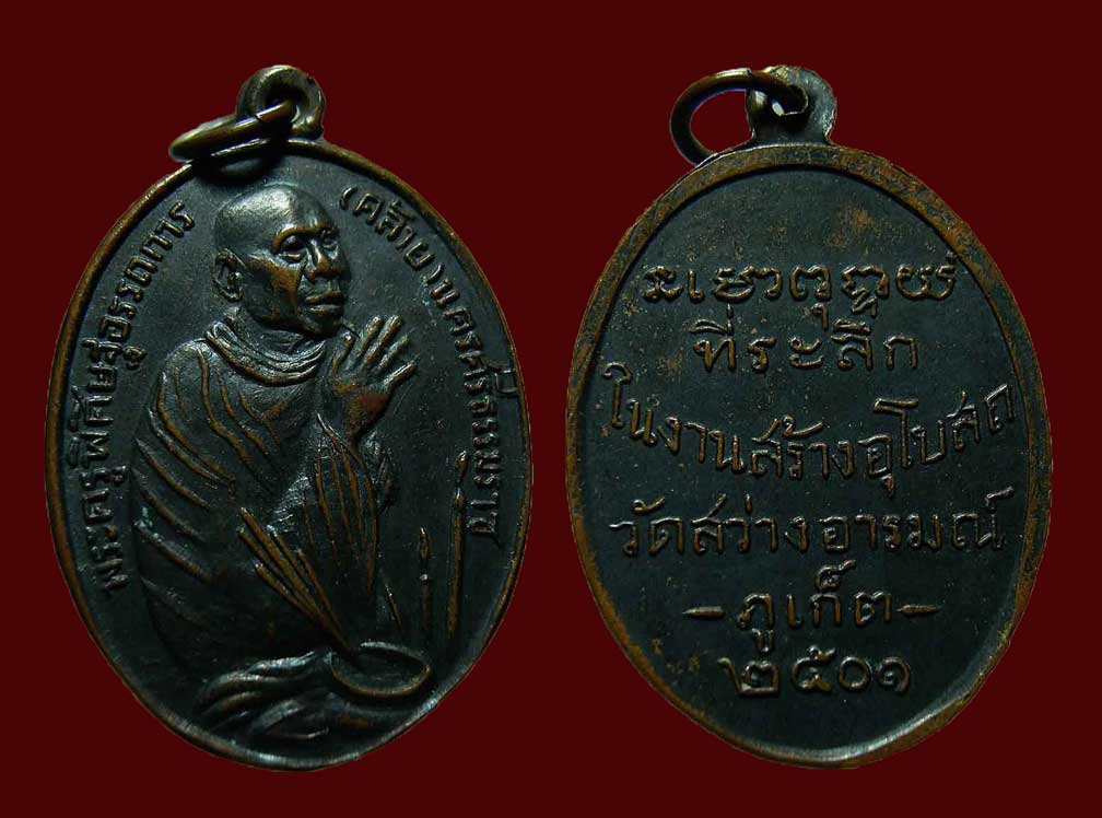 เหรียญไหว้ข้าง พ่อท่านคล้าย รูปไข่ สร้างปี๒๕๐๑ ออกที่วัดสว่างอารมณ์(วัดราไวย์) จ.ภูเก็ต ที่ระลึกในการสร้างอุโบสถ