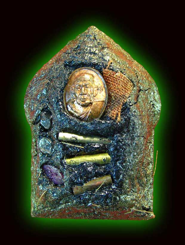 ขุนแผนทาทองพิมพ์ทรงพลใหญ่ หลวงปู่หมุน รุ่นมหาสมปรารถนา หลังเม็ดยาทองเเดง พลอยเสก จีวร เกศาหลวงปู่หมุน และตะกรุด3ดอก จัดสร้างโดยพระอาจารย์ตั๋ว วัดซับลำใย (ศิษย์เอกหลวงพ่อกวย วัดโฆสิตาราม)ซึ่งมีมวลสารต่างๆมากมาย เช่น เนื้อผงว่านดินกรุและพระแตกหักของขุนแผนวัดบ้านกร่าง , เนื้อว่านมหาเสน่ห์เมตตามหานิยมจำนวนมาก บางชนิดต้องไปพลีในป่าลึก ว่านอาถรรพ์และผง108ของหลวงพ่อกวย ครูบาอิน อินโท วัดฟ้าหลั่ง หลวงพ่อสมภพ วัดสาลีโข หลวงพ่อออด วัดบ้านช้าง หลวงพ่อเย็น วัดสระเปรียญ ฯลฯ และผงที่หลวงปู่หมุนสะสมไว้ นำมาผสมเป็นมวลสารทำพระรุ่นนี้ แถมยังปลุกเสก 3 วาระ พิธีพุทธาภิเษกวัดป่าหนองล่ม สระแก้ว , วัดซับลำใย ลพบุรี และ วัดพระศรีรัตนมหาธาตุ พิษณุโลก พุทธคุณในพระรุ่นนี้ เด่นด้านเมตตามหานิยม ติดต่อเจรจาค้าขาย แคล้วคลาด ปลอดภัย |