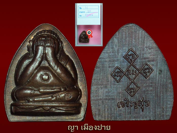 พระปิดตาเจริญสุข หลวงปู่สิม พุทธาจาโร วัดถ้ำผาปล่อง อำเภอเชียงดาว จังหวัดเชียงใหม่ เนื้อทองแดง สร้างปี 2517 สร้างแจกผู้ที่มาร่วมงาน ปลุกเสกพระชุดเมตตา เนื่องจากพระชุดเมตตา ถูกจองหมดเรียบร้อย